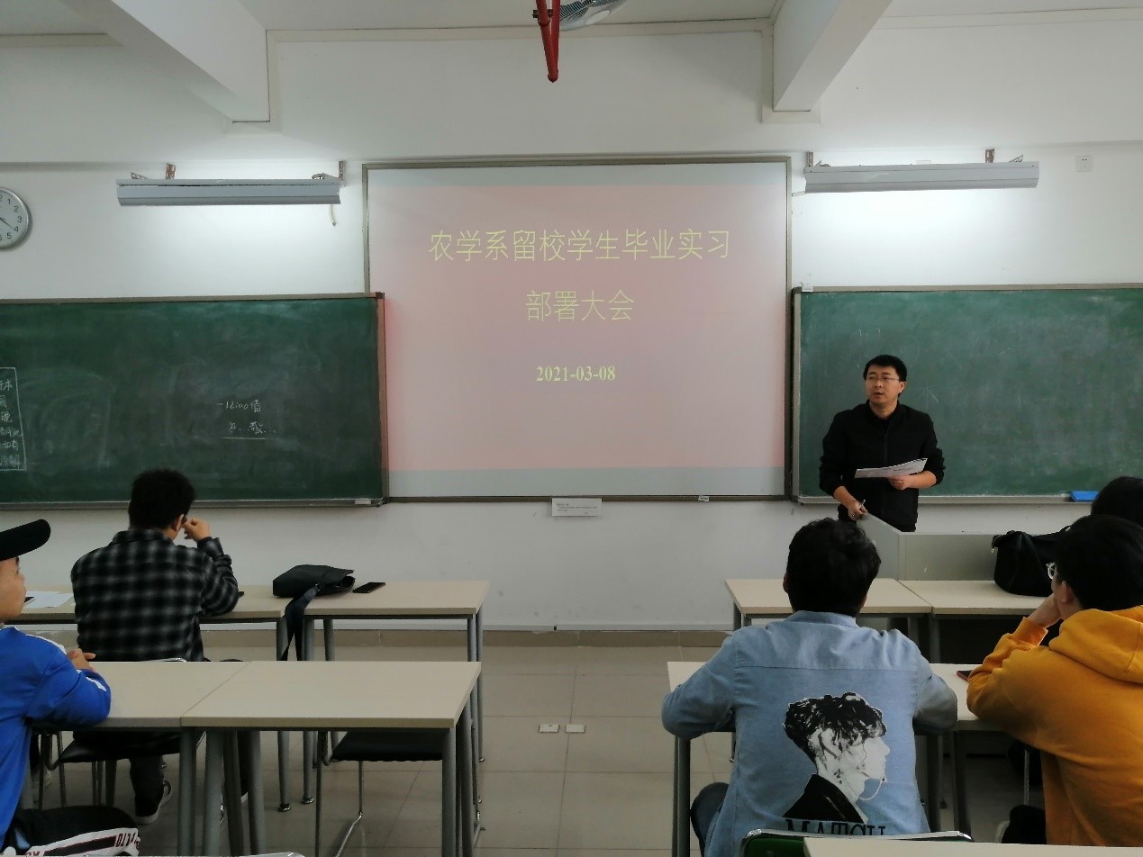 2021年3月8日,伟德bv1946官网农学系在D栋303召开2017级留校员工毕业实习部署大会。会议由系主任陈青春主持,农学系全体教师(蒋锋、刘鹏飞、孙伟、兰霞、张姿丽、李春梅、包格根、杨永、颜珣)和2017级18名留校员工参加了此次会议。