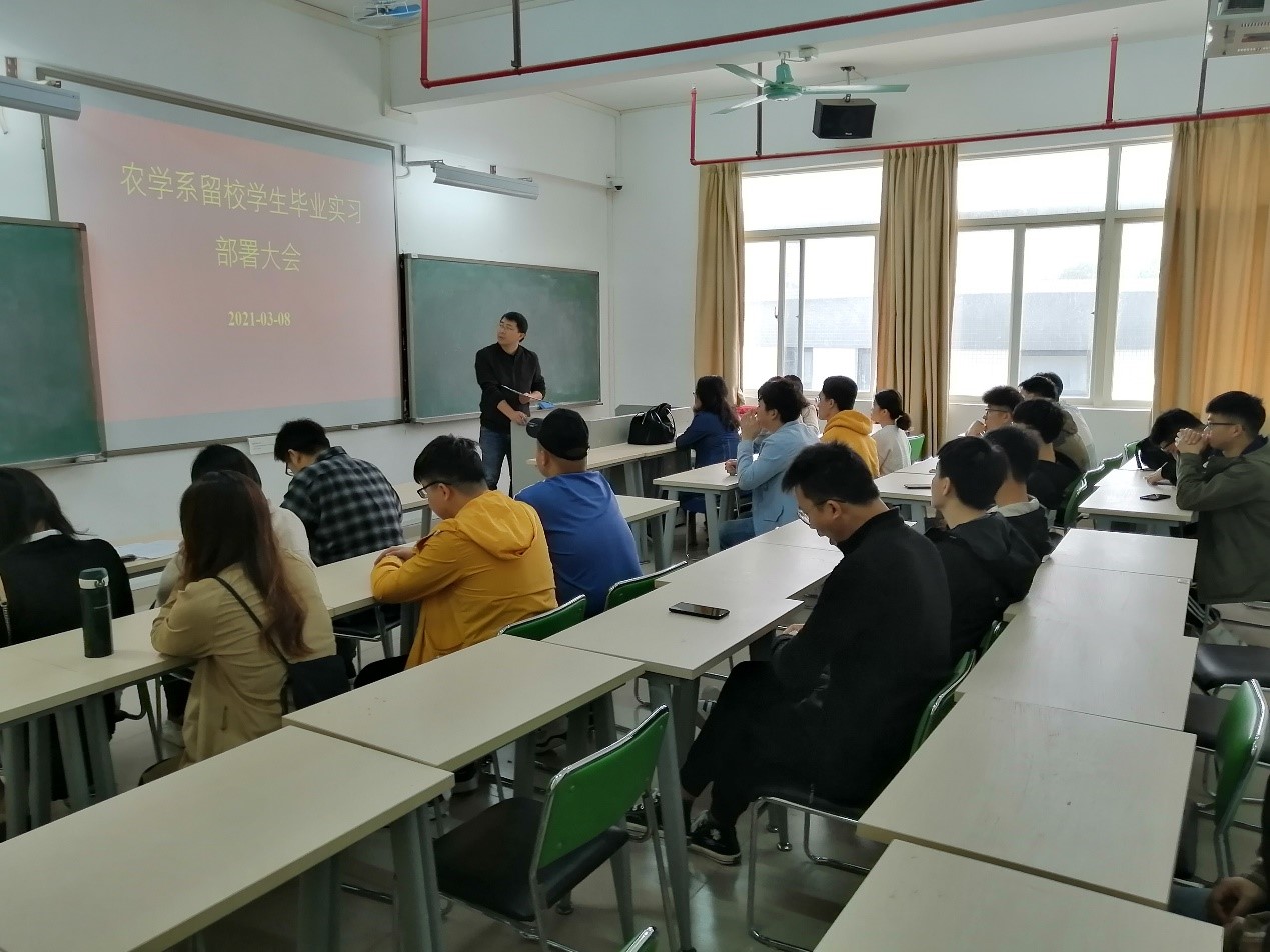 陈青春主任首先对本学习实习性质做了介绍,并针对留校实习利弊进行了分析,希望同学们能准确找准自身定位,选择适合的实习方向,不要浪费时间;同时,就本学期留校实习总体的工作做了部署,在校实习主要内容包括开展实验室实验、大田种植管理、科技下乡等方面。最后陈主任强调了实习纪律和安全,希望所有员工都能严格按照实习要求开展实习,规范操作流程,确保安全。
