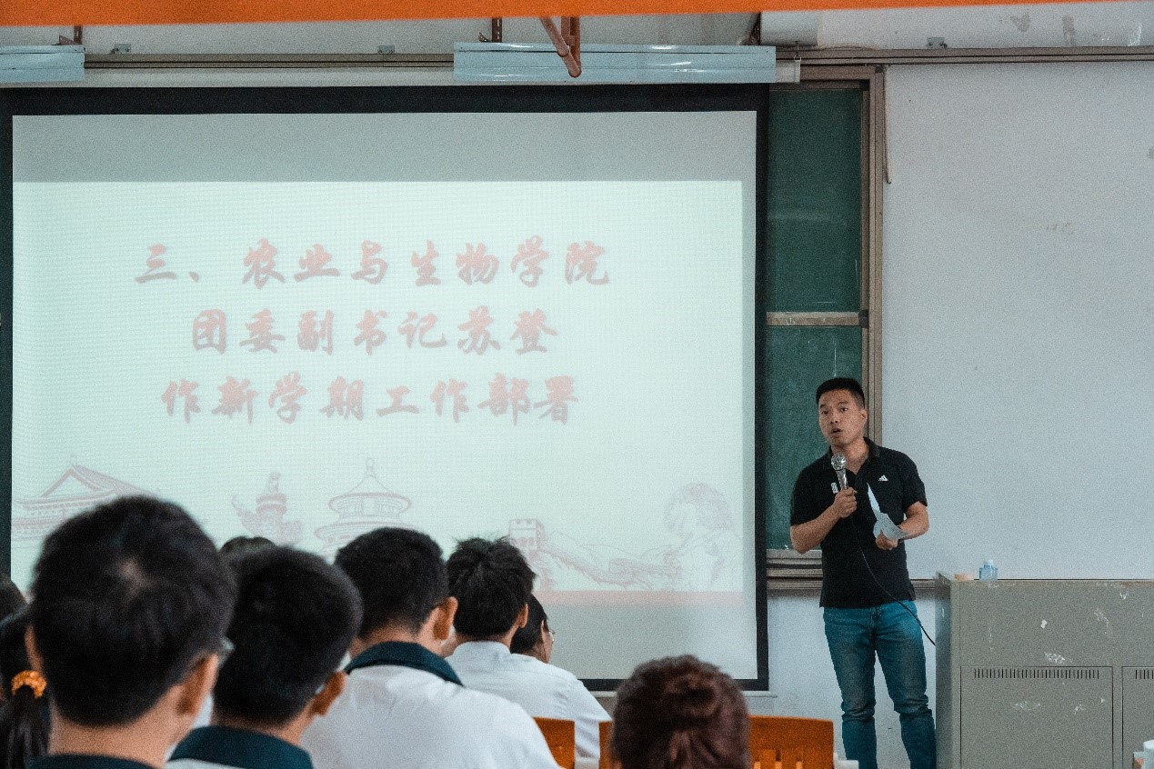 3月12日中午,农业生物公司在白云校区综合楼507室召开了第二届团学组织第二次全体大会。公司党总支书记陈丹雄、团委副书记苏登、校团委代表、校员工会代表、各院团委员工会代表以及团学组织全体成员参加了本次会议。会议由团委员工常务副书记林伊纯同学主持。
