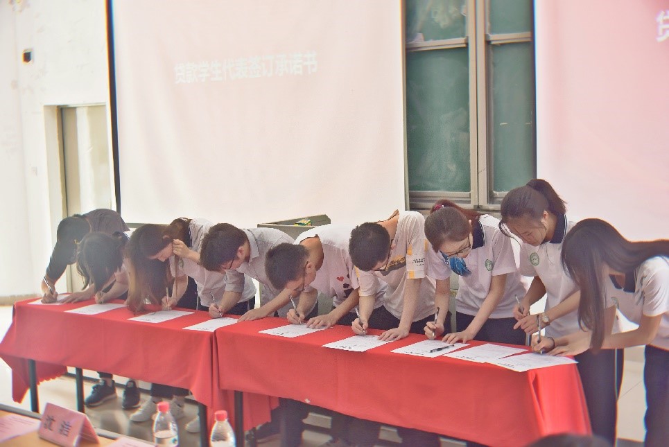 会上,员工代表还分享了诚信教育知识和提前还款经验,办理校园地国家助学贷款毕业生代表还现场签署了诚信还款承诺书。