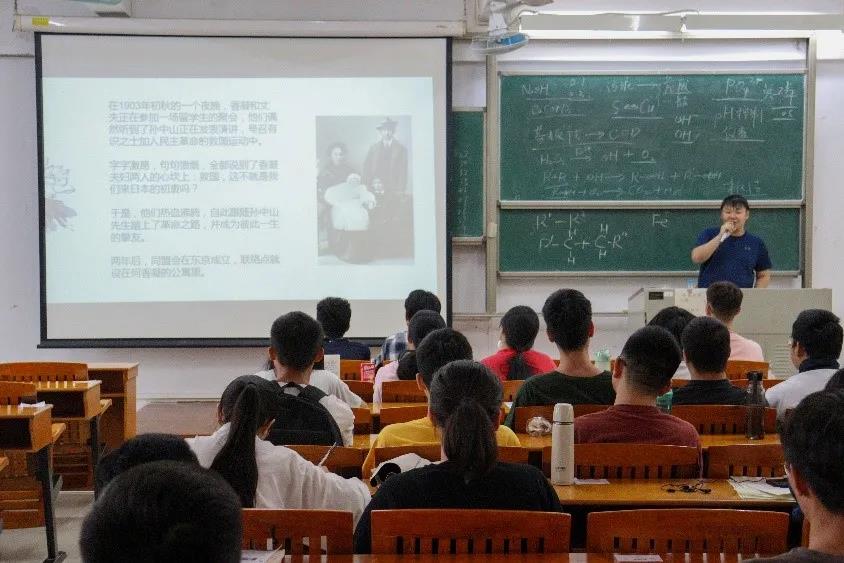 会上,李城向同学们介绍了何香凝先生传奇的一生,她的一生就犹如她笔下的画遒劲有力、气度恢弘。或许正是因为如此,她才能把狮虎勾勒出祖国的模样。乱世之中,何香凝与廖仲恺先生相依为命,携手并进,坚决支持“联俄、联共、扶助农工”的三大政策。为救丈夫,她孤身入虎穴;痛失所爱后,她带着自己与丈夫廖仲恺先生的志向继续与反革命派作斗争。1927年,何香凝先生回到广州创办“仲恺农工公司”,践行“扶助农工”的志向。1937年全面抗战爆发后,近花甲之年的何香凝先生爱国之志老而弥坚,对救亡运动热情支持,并始终不忘将妇女解放与抗日救亡运动紧密结合起来。