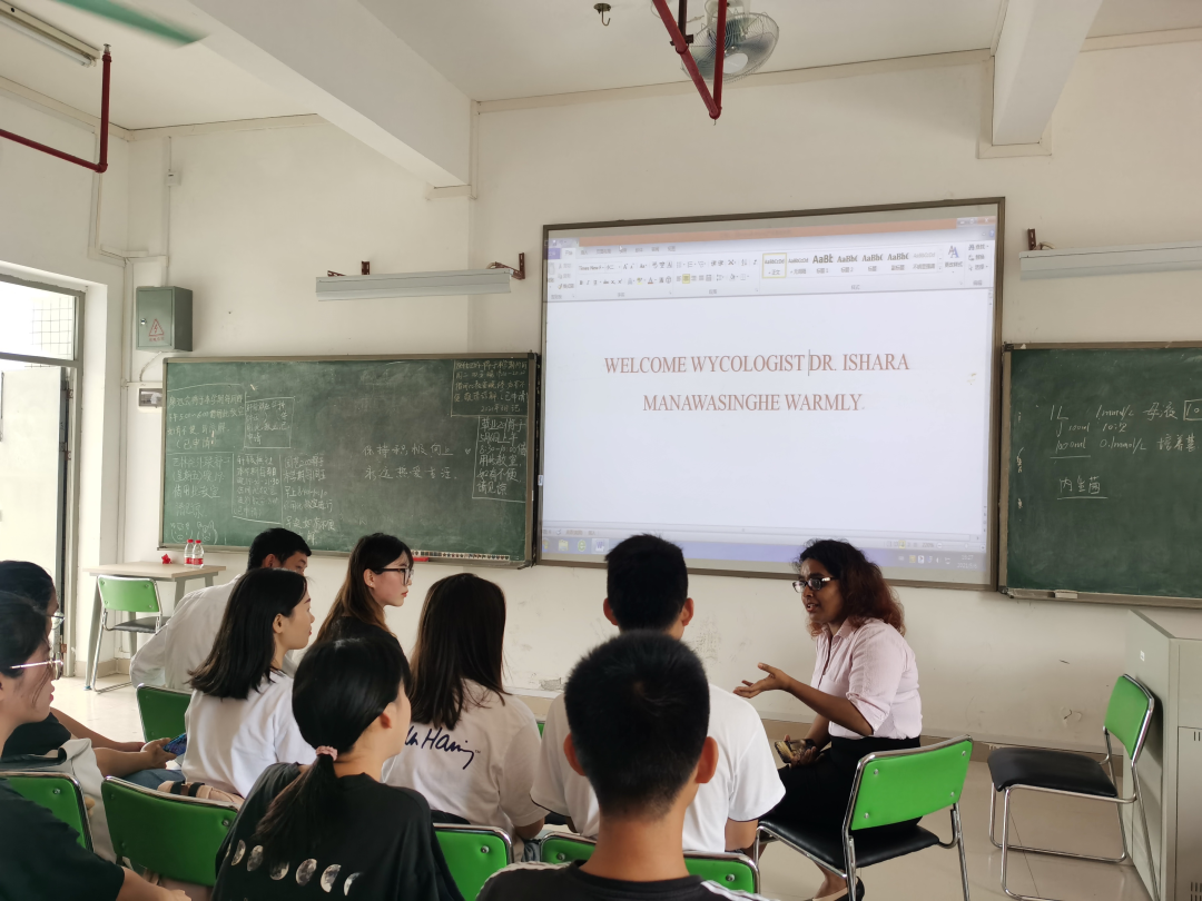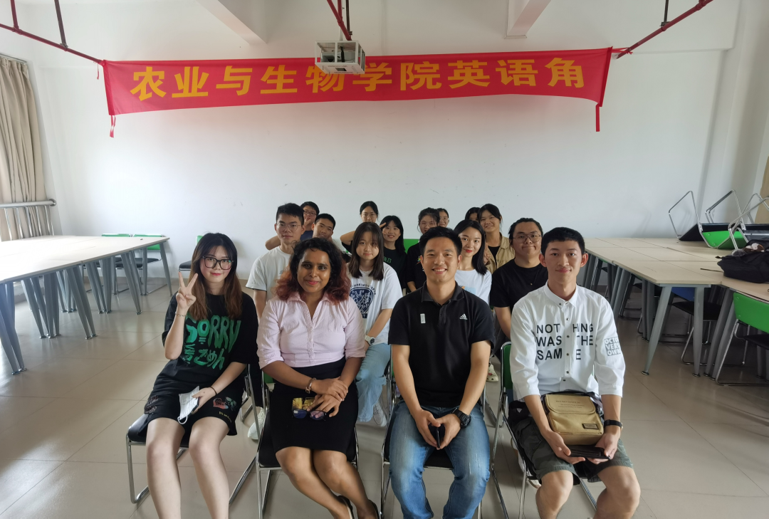 活动开始,游春平首先介绍了Ishara博士。她曾在泰国皇太后大学从事博士后研究,目前在公司植物健康创新研究院工作,研究方向为真菌性系统和资源发掘团队。随后Ishara向大家分享了她学习英语的经历,并将同学们分成了4组进行讨论。同学们非常积极参与讨论,并对自己小组的话题发表了自己的看法。