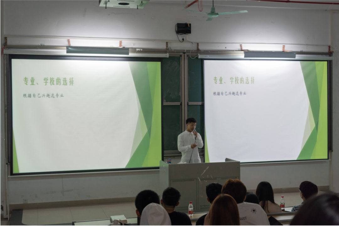 最后,农学171班的林思远同学向大家分享了备战考研的经验。他的内容有专业、公司选择,专业课复习,考研心态调整等三个方面。他强调要根据自己兴趣来选择专业,根据自身实力和复习状态选择报考公司;专业课复习,主要以听课和阅读相结合,同时重视基础知识、合理规划复习时间;如果我们考研心态出现问题,则适当允许焦虑的存在,专注好自己的计划以及注重劳逸结合。