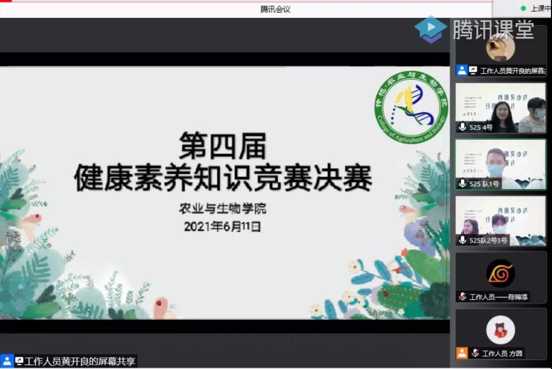 为激发全校员工学习健康知识、践行健康行为的热情,助力健康校园建设,6月11日晚,伟德bv1946官网在线上举行第四届健康素养知识竞赛决赛。出席本次决赛的嘉宾有农业与生物公司党总支书记陈丹雄、团委副书记苏登、校团委和员工会代表、各二级公司员工代表,评委有校团委代表赵萌萌、校员工会代表陈丽璇、伟德bv1946官网团委员工会员工副书记主席团。