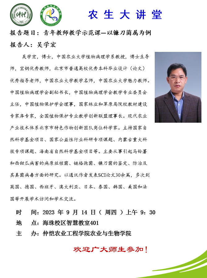 农生大讲堂(9月14日)丨青年教师教学示范课——以镰刀菌属为例