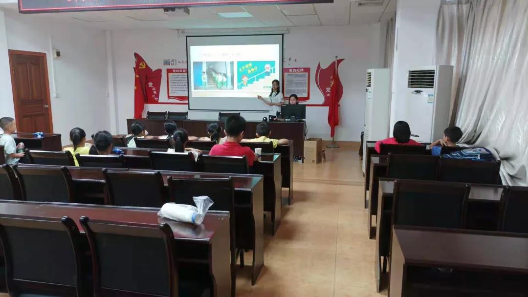 在水口镇文化活动中心,队员们面向小朋友们进行了党史宣讲,通过在黑板上书写党史、朗诵红色经典诗词、歌唱《没有共产党就没有新中国》等形式,让小朋友们了解党的光辉进程。小朋友们挥舞着红旗,了解着小小一面红旗所代表的巨大意义!小朋友们的眼睛里闪烁的团团光芒,印证了中国革命历史是青年们最好的营养剂,愿他们铭记党史,长江后浪推前浪,今朝少年勇自强!
