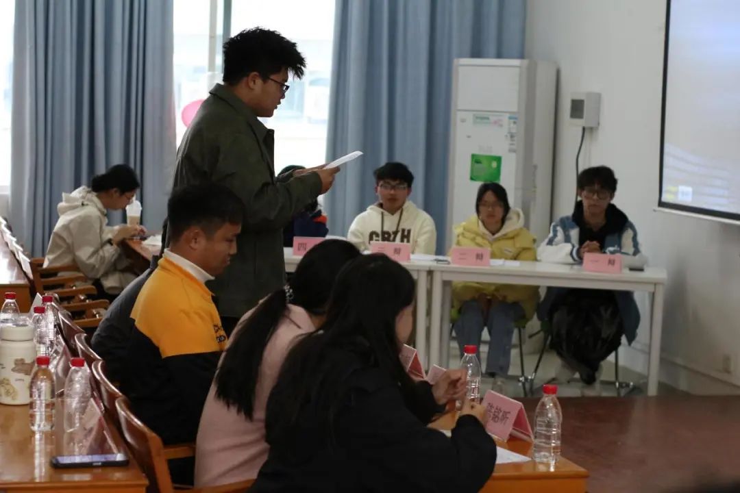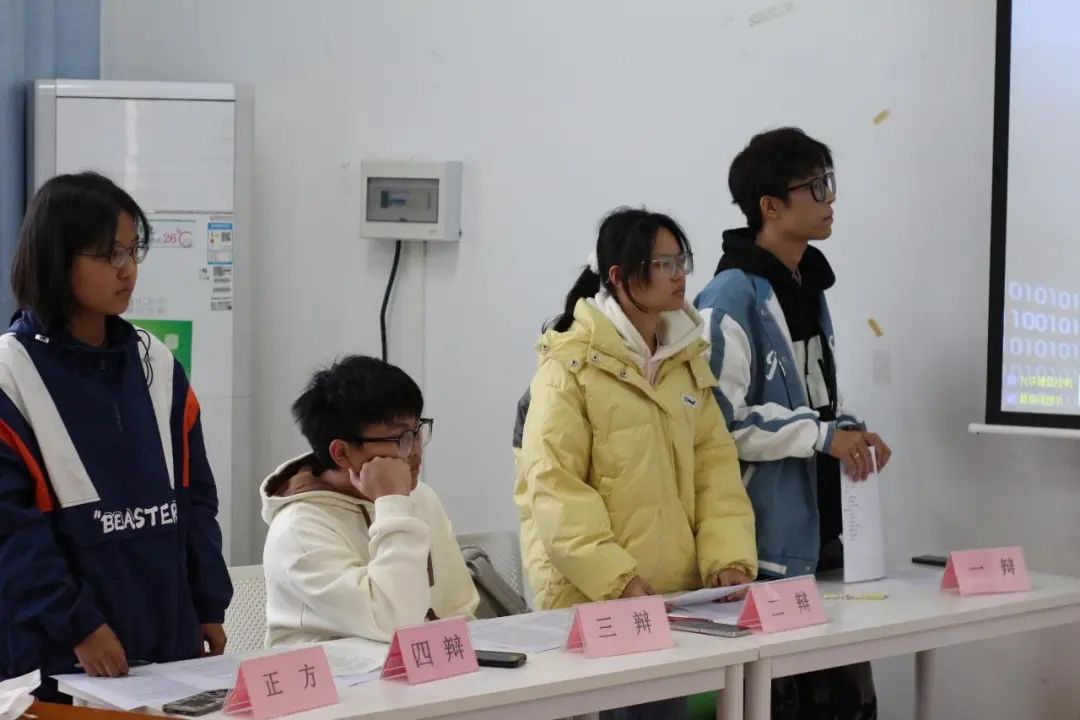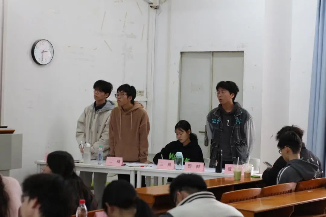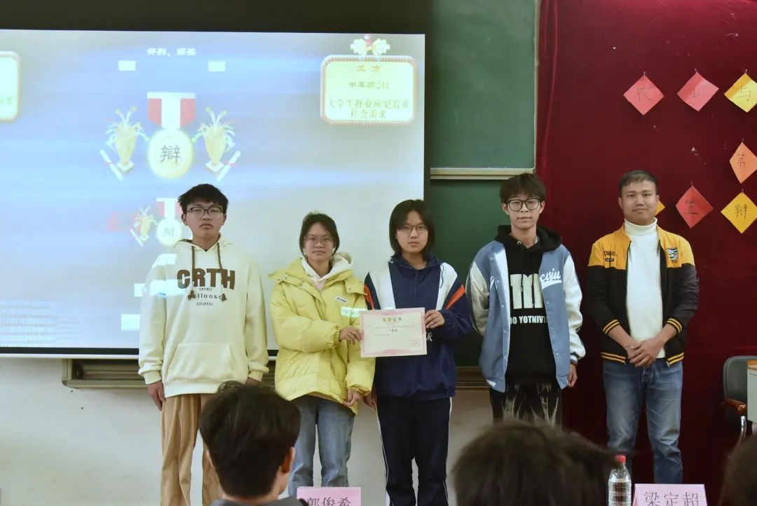 本次决赛农学242班为正方,中草药241班为反方,他们围绕辩题“老员工择业应更看重个人兴趣还是社会需求”展开激烈辩论。