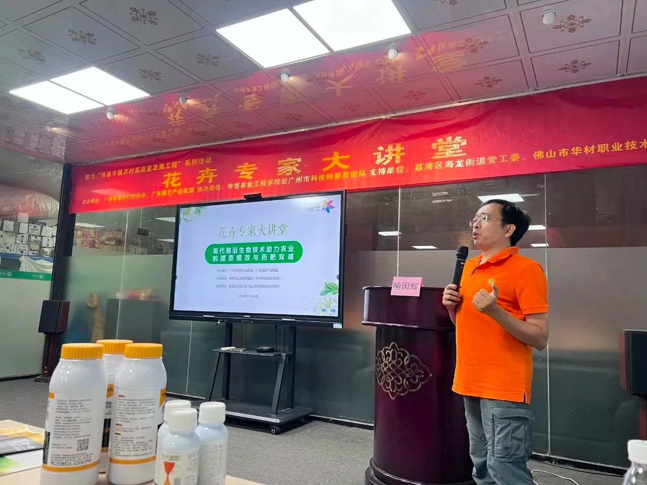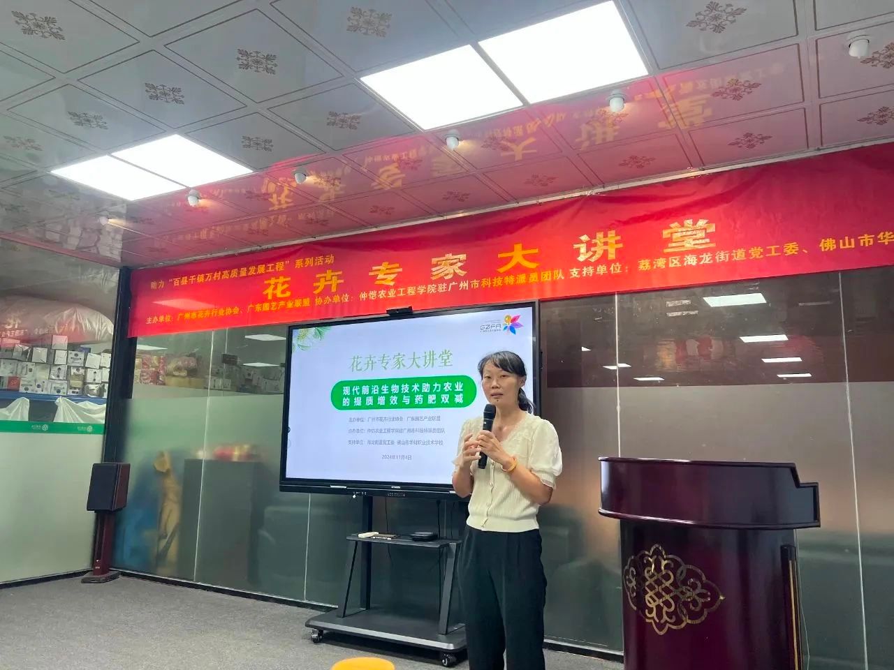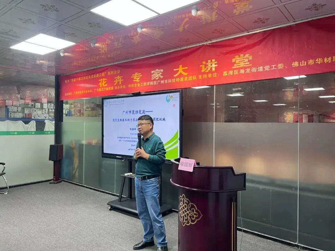 2024年11月4日,广州市科技特派员团队(项目:SL2022E04J00376)赴广州大观园艺科技有限公司开展一场题为《现代前沿生物技术助力农业的提质增效与药肥双减》培训讲座。此次讲座由广州市花卉行业协会梁文婷主持,由伟德bv1946官网副经理(主持工作)喻国辉老师主讲,吸引了众多花卉种植者和相关从业人员的参与。